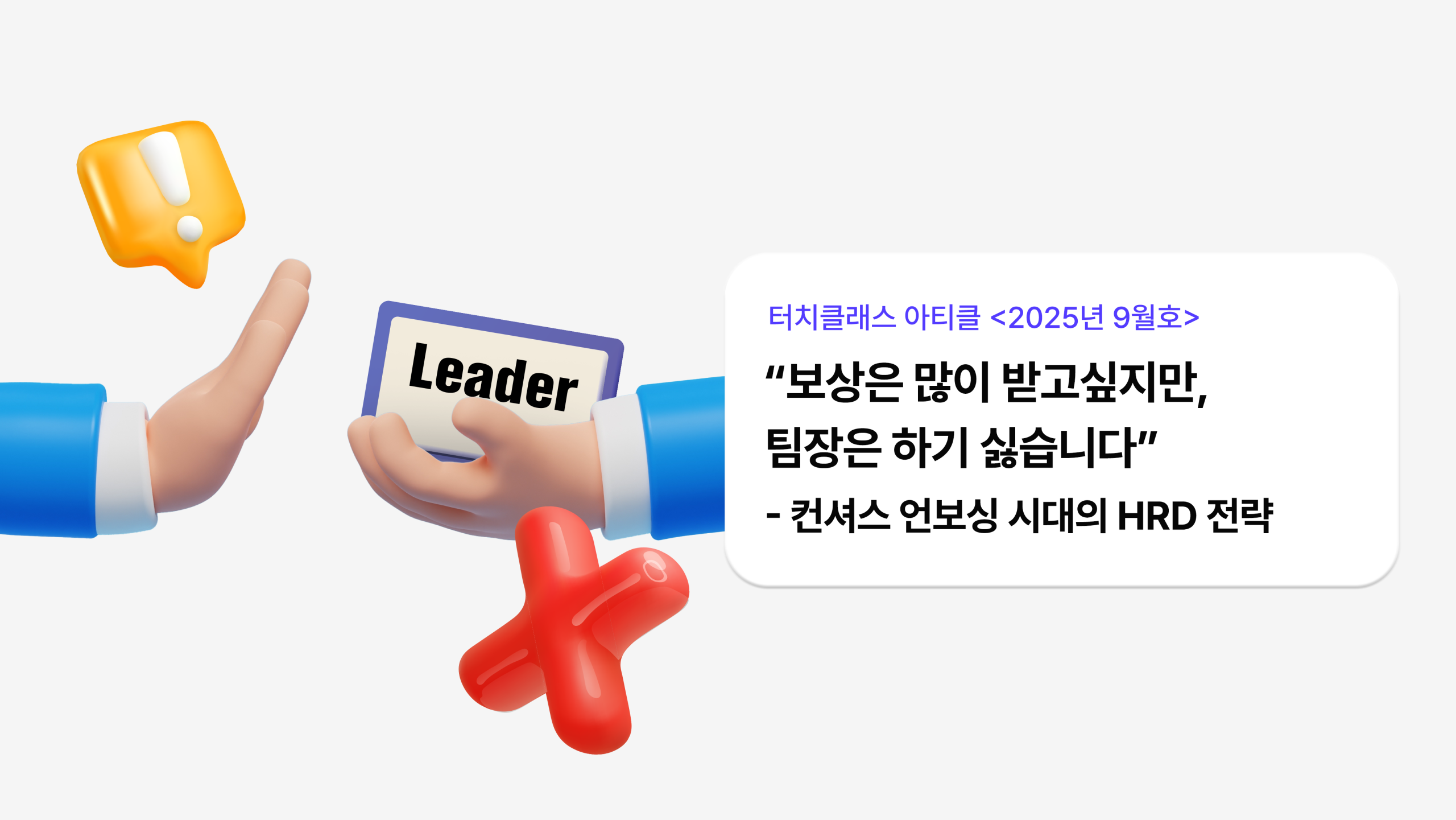 그리고 이 변화를 뒷받침하는 가장 중요한 축이 바로 HRD입니다. 누구나 자신만의 방식으로 성장할 수 있는 학습 환경을 제공하는 것, 그 첫 걸음을 ‘터치클래스’ 학습 플랫폼의 도입에서부터 시작해 보세요.